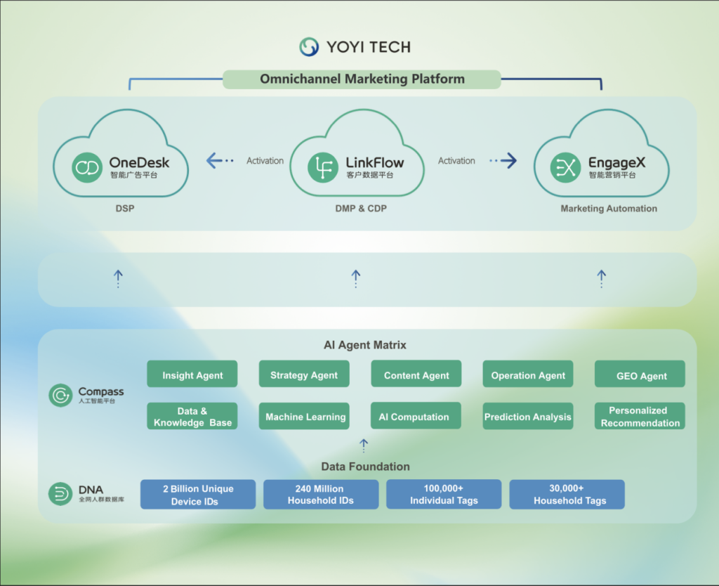 As a dedicated practitioner of AI omnichannel marketing, YOYI TECH leverages its tech-driven approach to build a comprehensive intelligent product matrix anchored by the Compass AI Platform. This matrix covers five core agents—Insight, Strategy, Content, Operations, and GEO—creating a closed-loop technological architecture that spans the entire marketing journey.